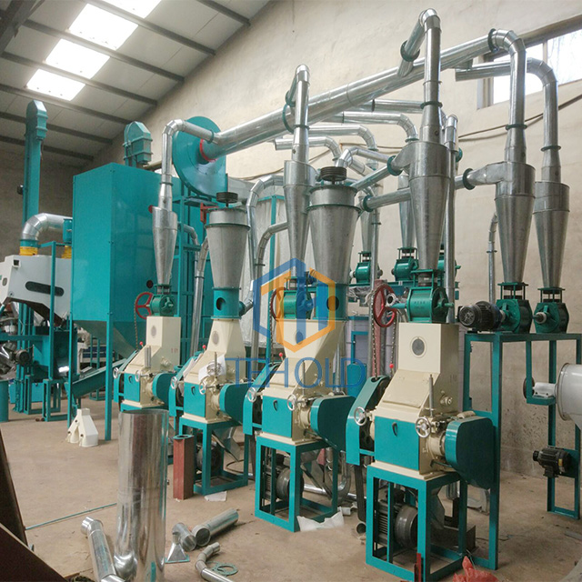 This design includes loading bucket elevators, multi-function cleaning machine (separating, destoning), magnet separator, conditioning machine and bin, pneumatic system, roller mills, flour sifters and power controlling system with all accessories.