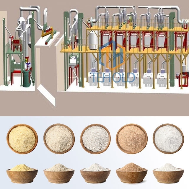 The cleaning system consists of three separating, two scouring, two destoning, one dampening, and three magnetic separators. While milling system has six sets double roller mills, five sets of twin-sifters and two bran brushers.